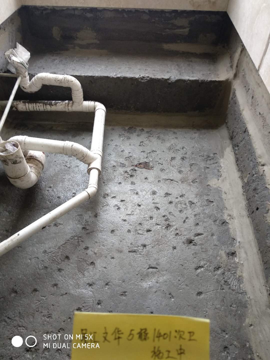 本案例為某樓的生間滲水,衛(wèi)生間長年往樓下滴水,周邊不同情況滲水。根據(jù)現(xiàn)場情況,公司給出的防水補(bǔ)漏方案為四周圍依托厚墻體做防水、加高地面存水能力,并利用原衛(wèi)生間地漏進(jìn)行排水,堵排接合的防水補(bǔ)漏方案。具體為人工開鑿衛(wèi)生間四周至原結(jié)構(gòu)面,陰角開“V”形槽,清洗封堵、加強(qiáng)防水層、整體防水層、三途并設(shè)二次排水。